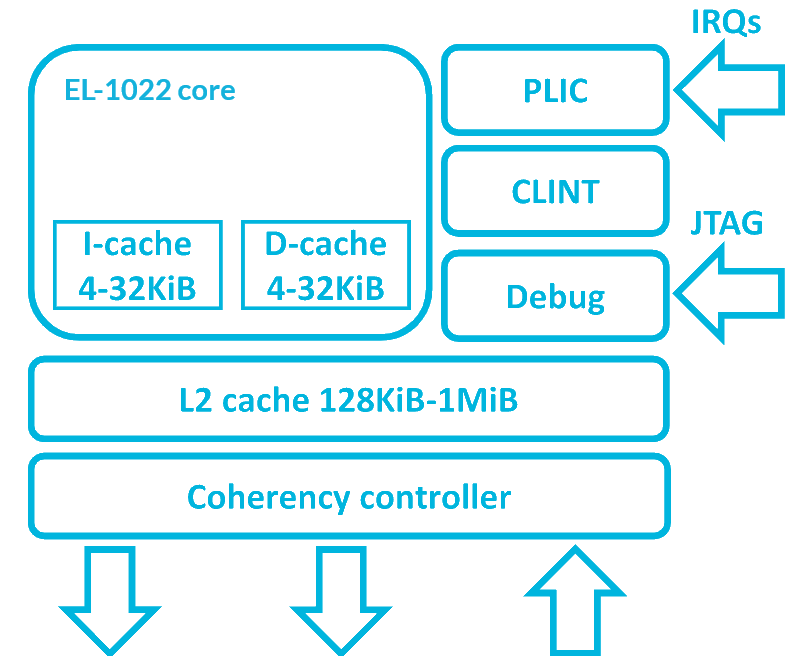 - Platform Level Interrupt Controller (PLIC): 127 interrupts with 8 priority levels